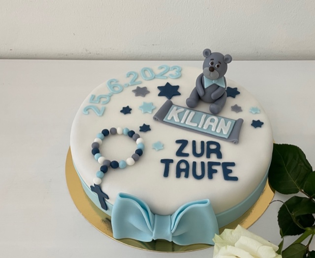Zum Tauffest hat die Torte Tradition als süßer Willkommensgruß für den Täufling. Wir fertigen sie in unserer Konditorei ganz nach Ihren Wünschen.